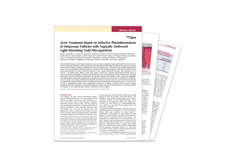 Acne Treatment Based on Selective Photothermolysis of Sebaceous Follicles with Topically Delivered Light-Absorbing Gold Microparticles